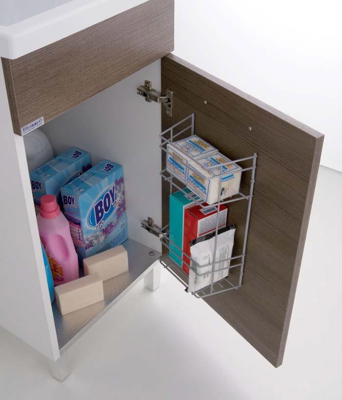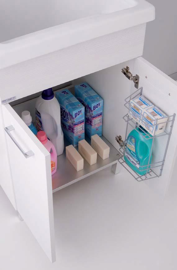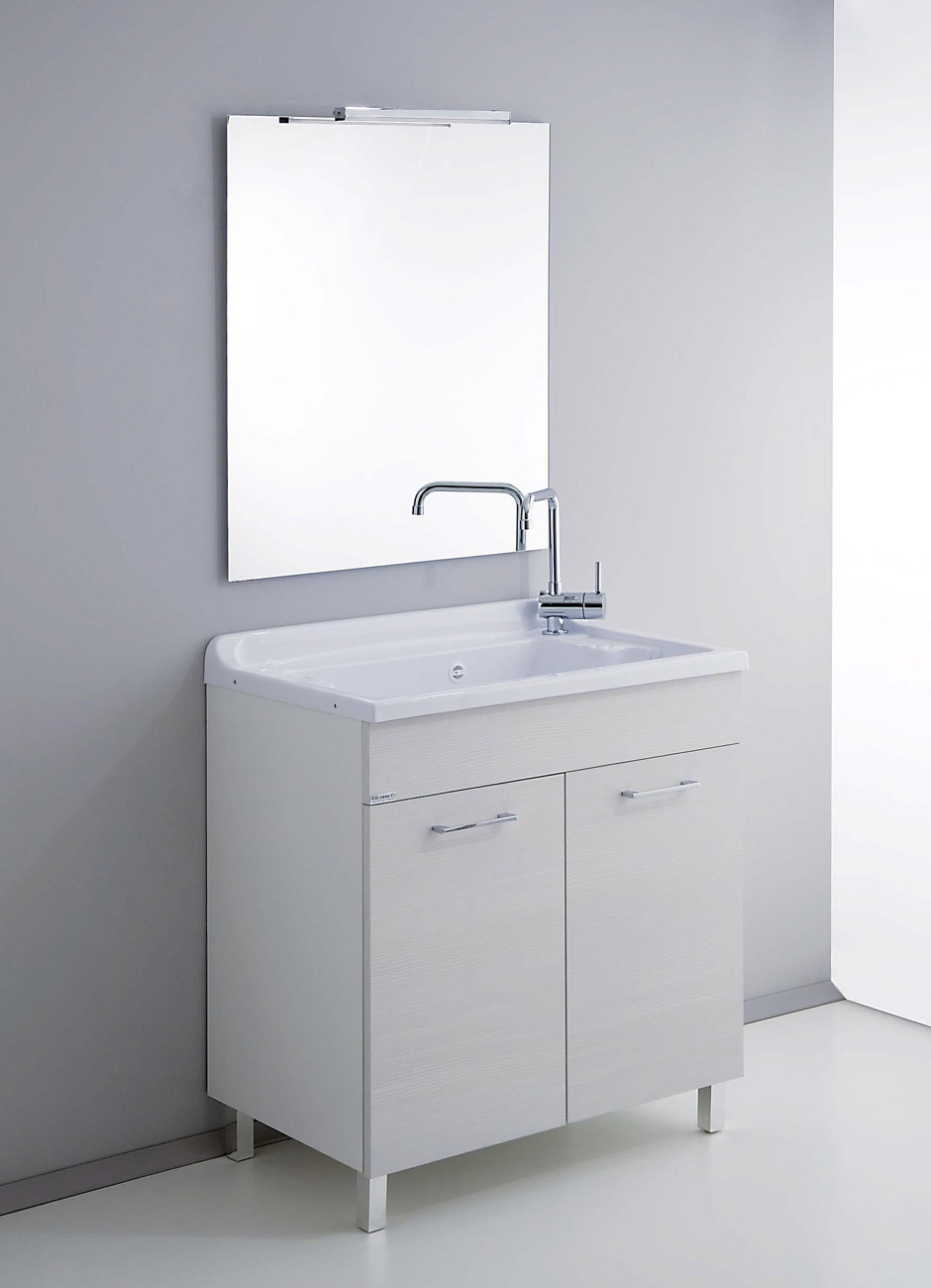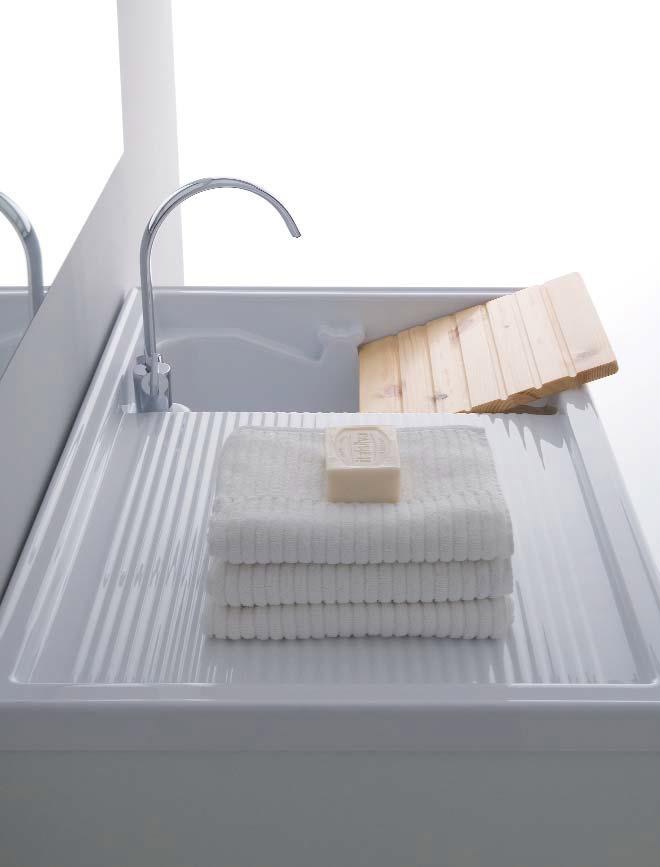 La collezione Medusa, declinata in sette differenti misure più il mobile portalavatrice, si distingue per l’utilizzo del lavabo in Abs. I Lavatoi in ABS sono realizzati in termoformatura bianco brillante e protezione UVB, si caratterizzano attraverso un’elevata resistenza agli urti, ai graffi e agli agenti atmosferici. I lavabi in ABS vengono forniti con una pellicola protettiva trasparente da rimuovere prima dell’uso. Sono distribuiti con una tavoletta in legno massello per il lavaggio, sifone, piletta e troppo pieno.