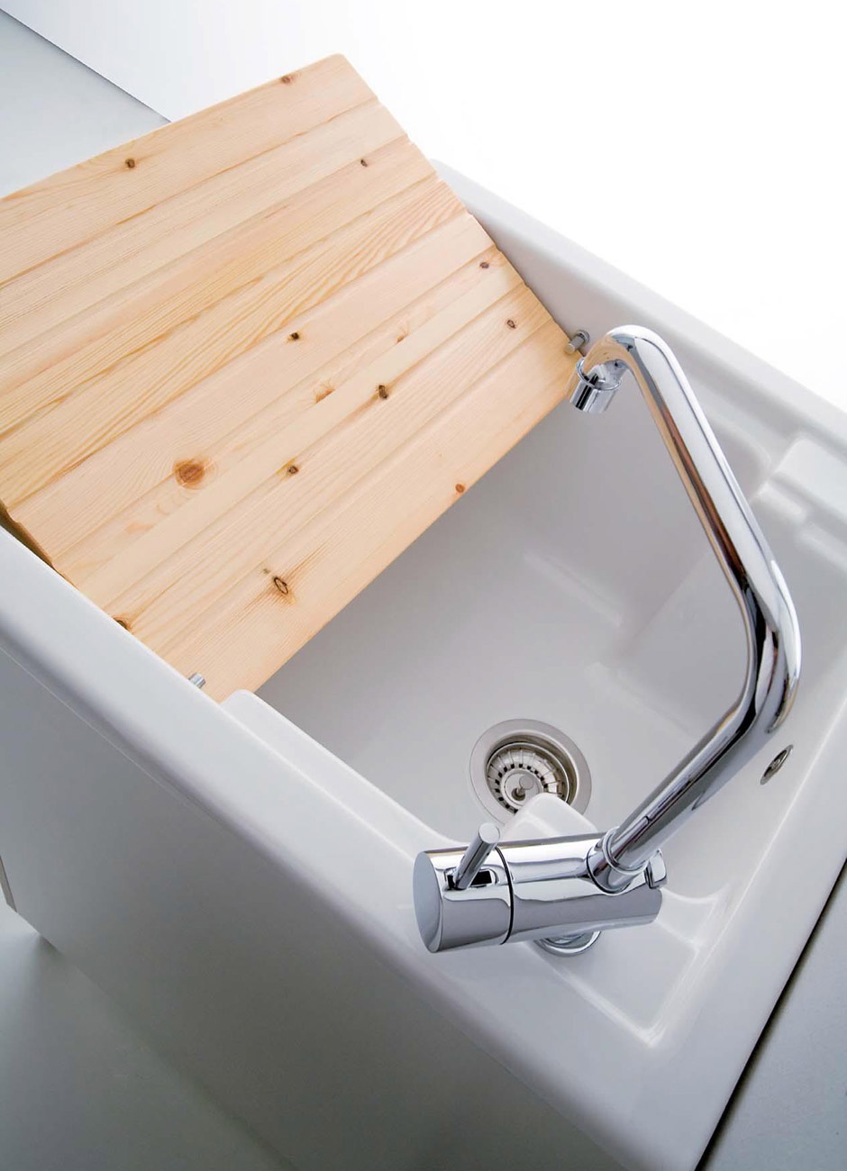 Cinque le collezioni di mobili lavanderia della Linea Oceano strutturate per l’applicazione dei lavabi in ceramica: Corallo, Onda, Anemone, Stella e Sabbia. Qualità eccellente della materia e massima lucentezza distinguono i prodotti ceramici Lmc. I lavabi possono essere con strofinatoio incorporato o con scanalature per l’inserimento della tavoletta in legno.