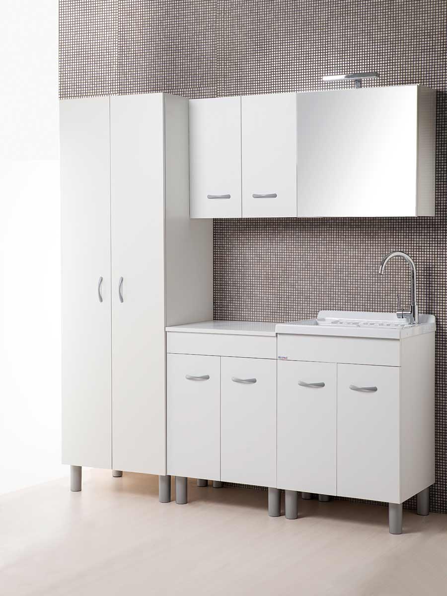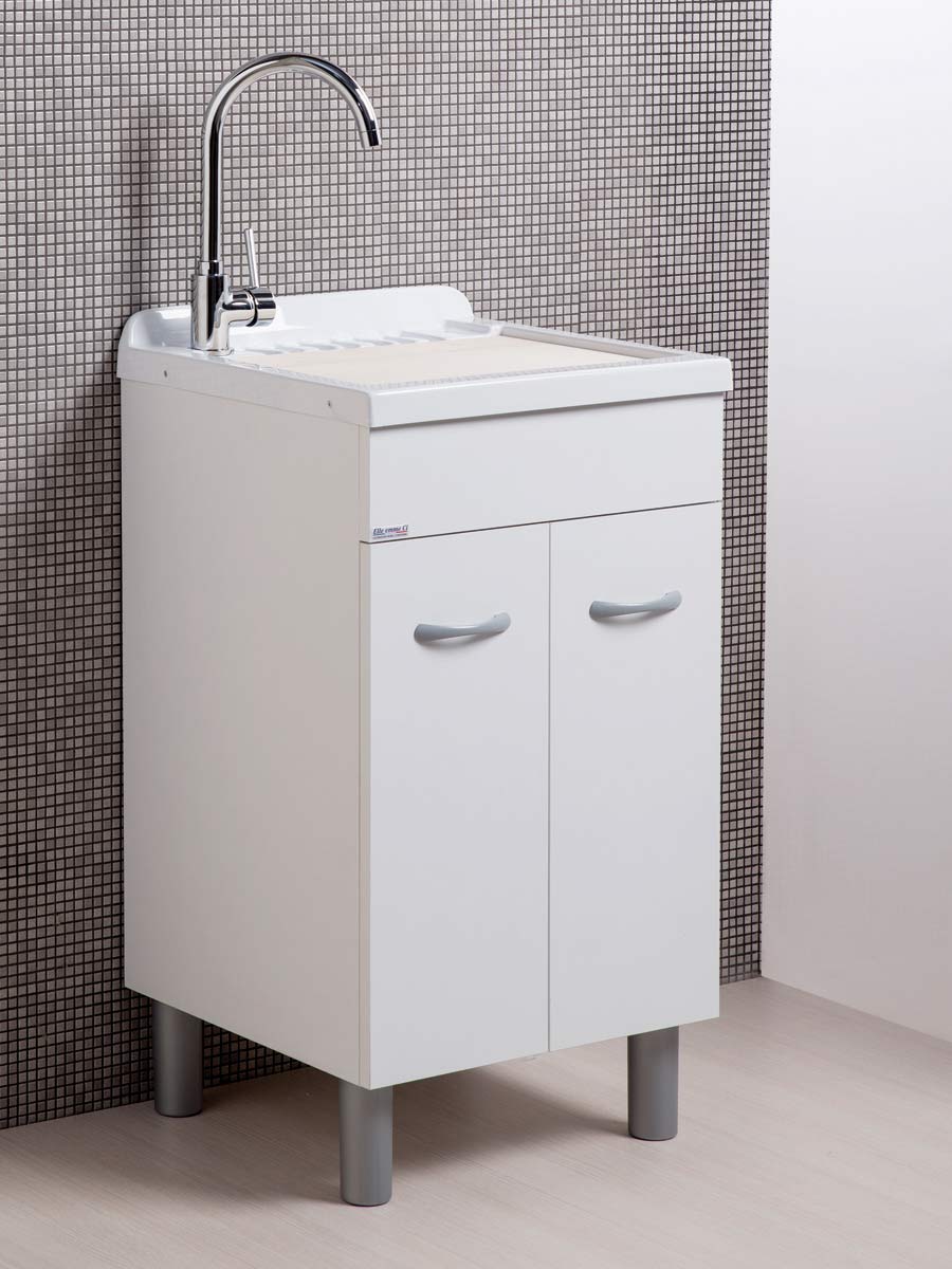 Lavatoio Zeus 60x50 con vasca in abs da 8 mm con funzione a doppio uso da lavabo da arredo ad una comoda vasca lavatoio e mobile in legno nobilitato spessore 18 mm con piedino in Pvc.